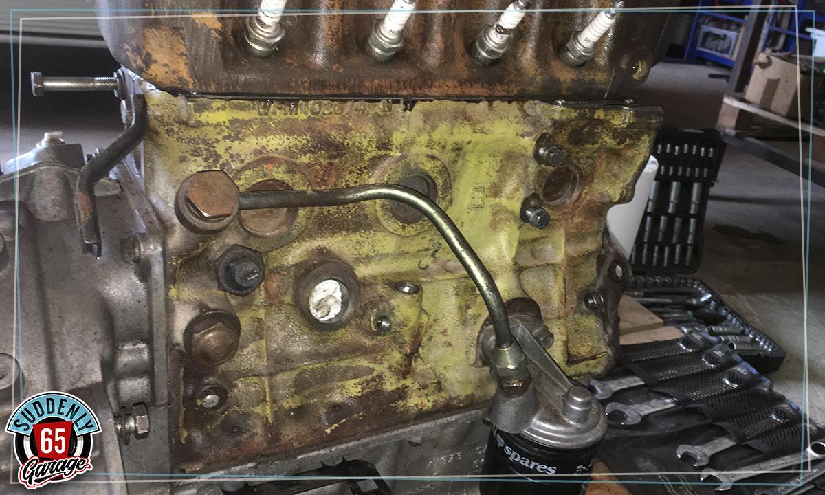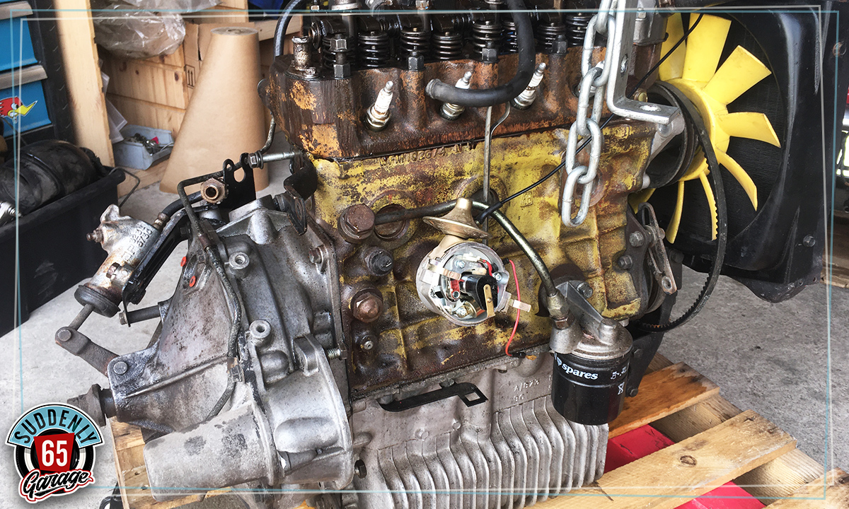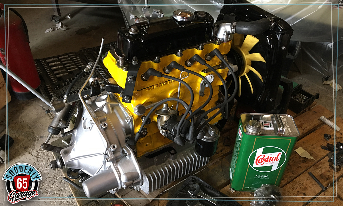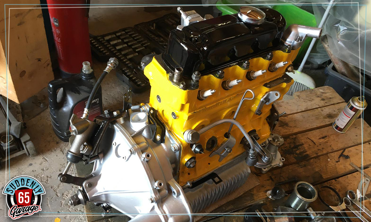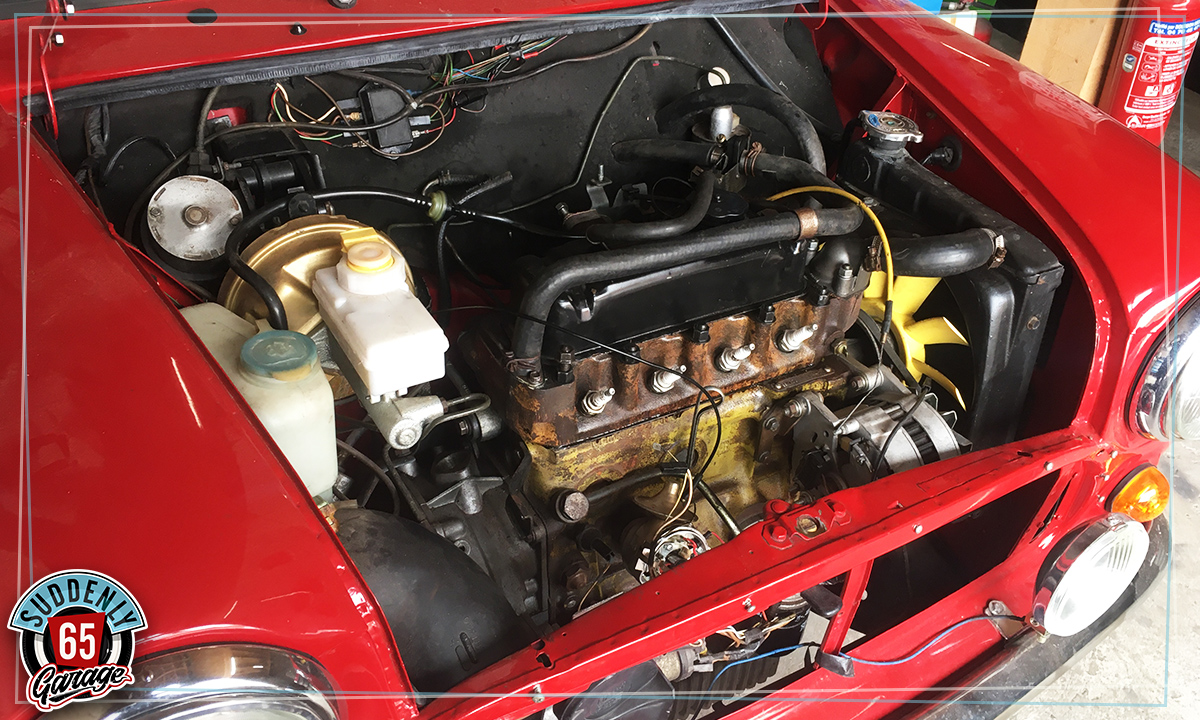 L'Austin Mini de Benjamin vient d'arriver à l'atelier en vue de remplacer l'embrayage.