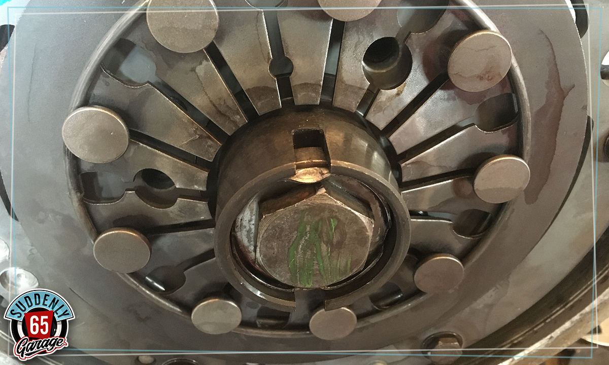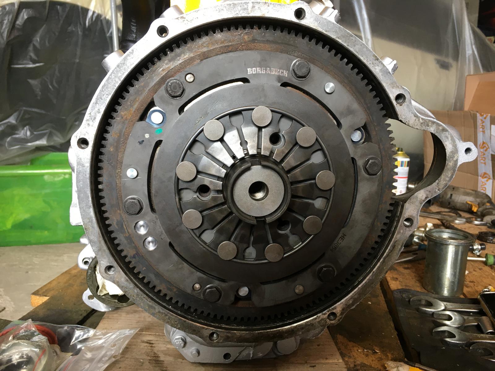 Embrayage neuf en place, ecrou serré à 15Kg et rondelle de sécurité repliée.
