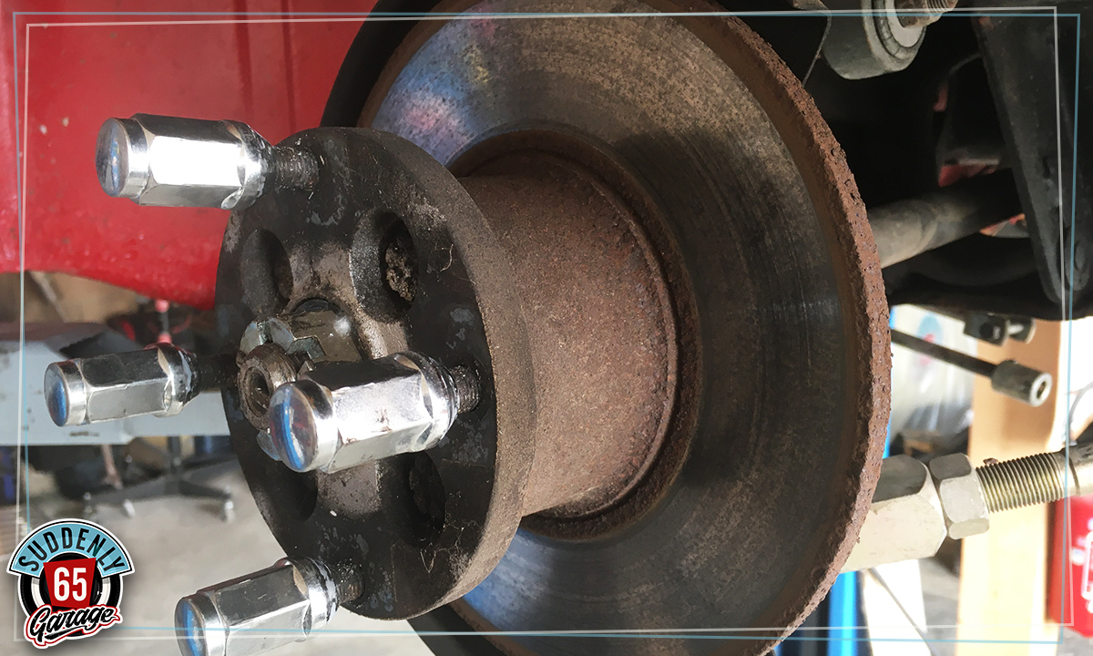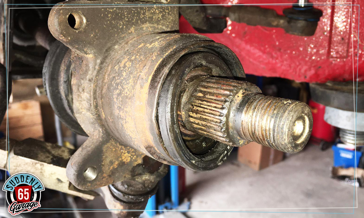 > Une fois le moteur sorti de son compartiment, des travaux supplémentaires sont prévus sur le freinage avant, changer une rotule de suspension et un axe d'amortisseur complètement grippé.